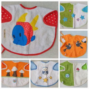 Lätzchen mit lustigen bunten Kinder-Motiven ersetzen die unbeliebten Plastik-Lätzchen. Jedes einzelne Lätzchen ist ein Unikat und mit viel Liebe genäht.
