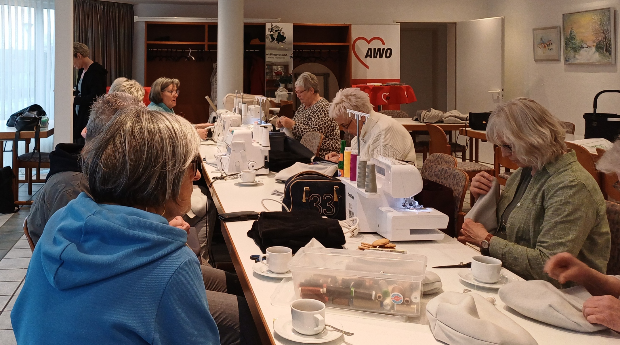 Schon fast seit der Gründung unserer Gruppe im September 2019 dürfen wir kostenlos die Nähräume der Familienbildungsstätte Werne nutzen. Als weitere Möglichkeit stellt uns ab 2026 der Ortsverein Werne der Arbeiterwohlfahrt einen Lagerraum an der Hüsingstraße kostenlos zur Verfügung, ebenfalls mit Platz zum Nähen.